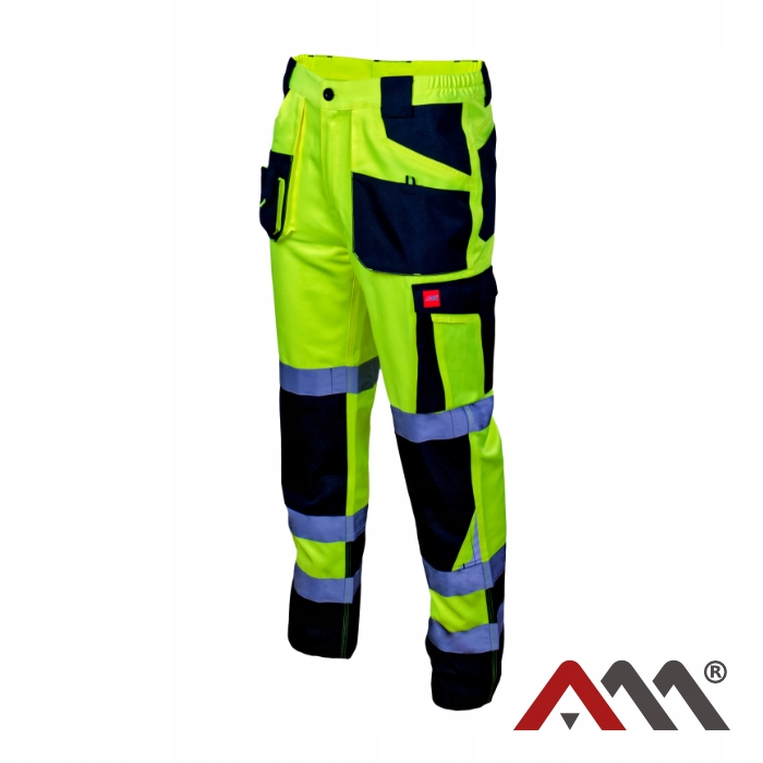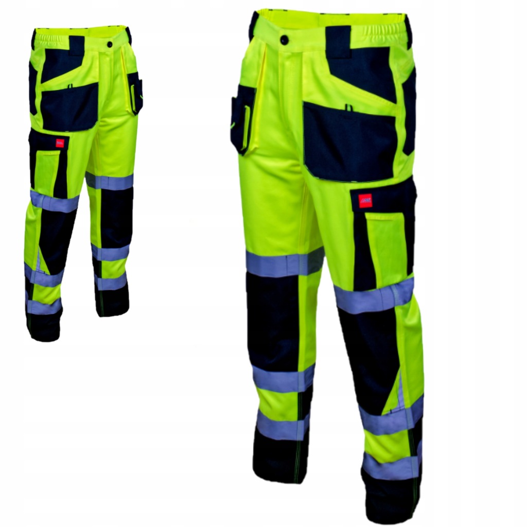 Робочі штани попереджувальні світловідбиваючі чоловічі захисні потрійні зшиті неонові R. 52