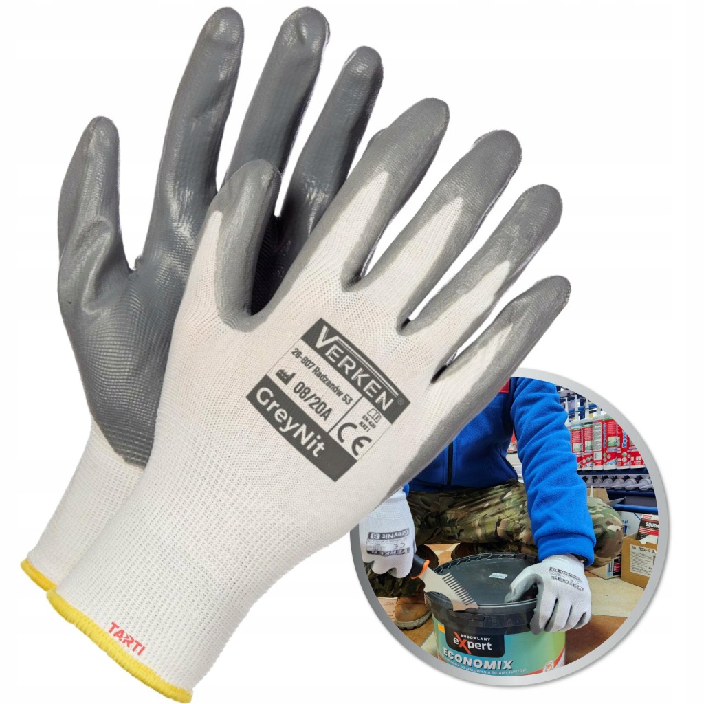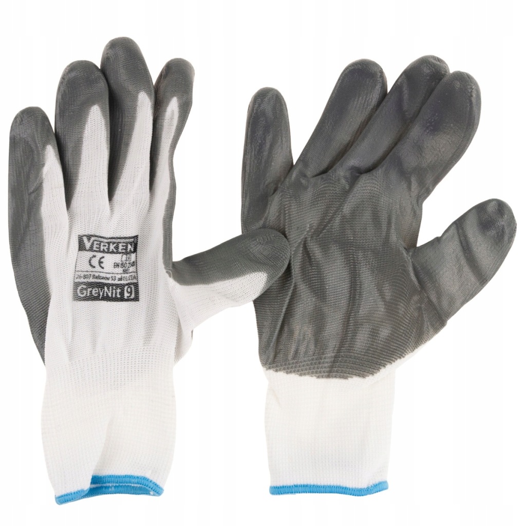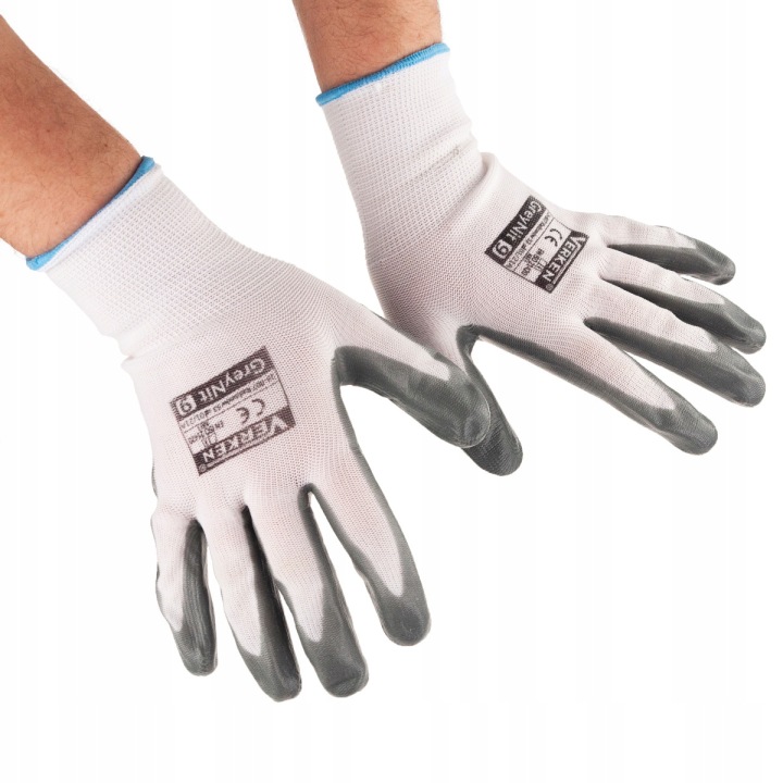 робочі рукавички для захисту шкіри рук від негативного впливу механічних факторів, слабких чистячих засобів і стандартних погодних умов . Виготовлений з поліестеру і додатково покритий нітрилом. Надійно зроблено і перевірено багатьма користувачами.