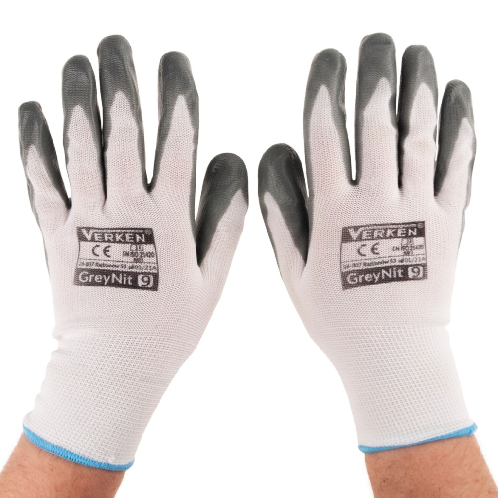 РОБОЧІ ЗАХИСНІ РУКАВИЧКИ НІТРИЛОВІ РУКАВИЧКИ СІРИЙ РОЗМІР 9 L