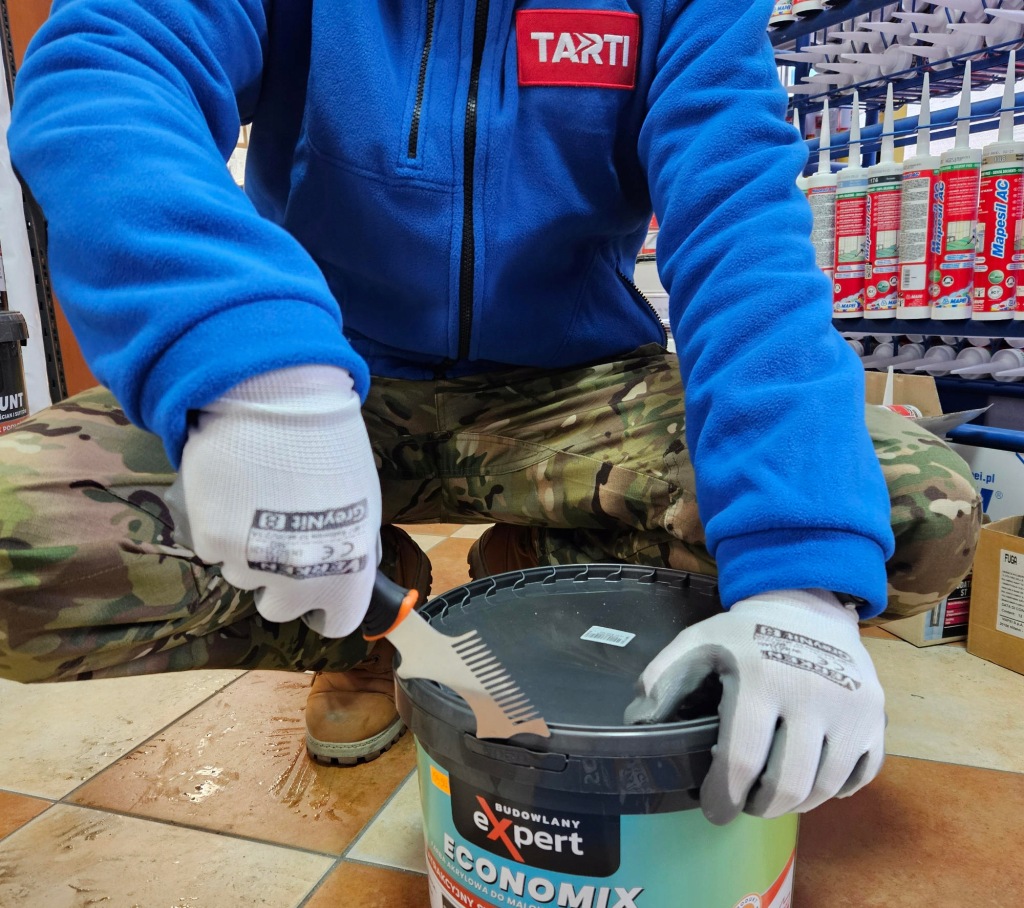 рукавички легкі, зручні. Забезпечує чудову зручність використання і захист торкається предмета (відбитки пальців, захист від поту), нековзний. Вони стійкі до стирання і неприємних забруднень, наприклад, маслами або мастилами, а також до мікрорізів. Особливо рекомендується в будівництві і промисловості.