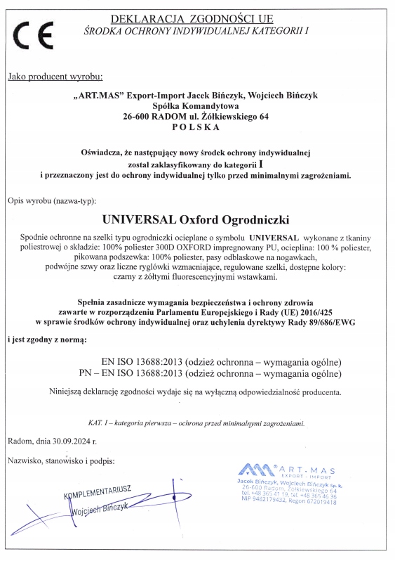 CE️CE cat. 1 EN ISO 13688: 2013