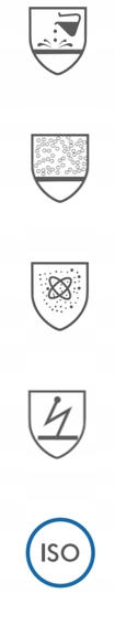 • EN ISO 13982-1:2004+A1:2010 - одяг для захисту від твердих частинок - Тип 5