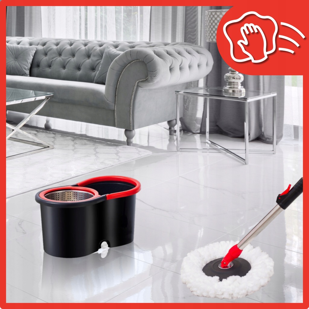 ️ ️ відро оснащене металевим Ротором, який дозволяє ефективно і ефективно центрифугувати воду з Швабри.