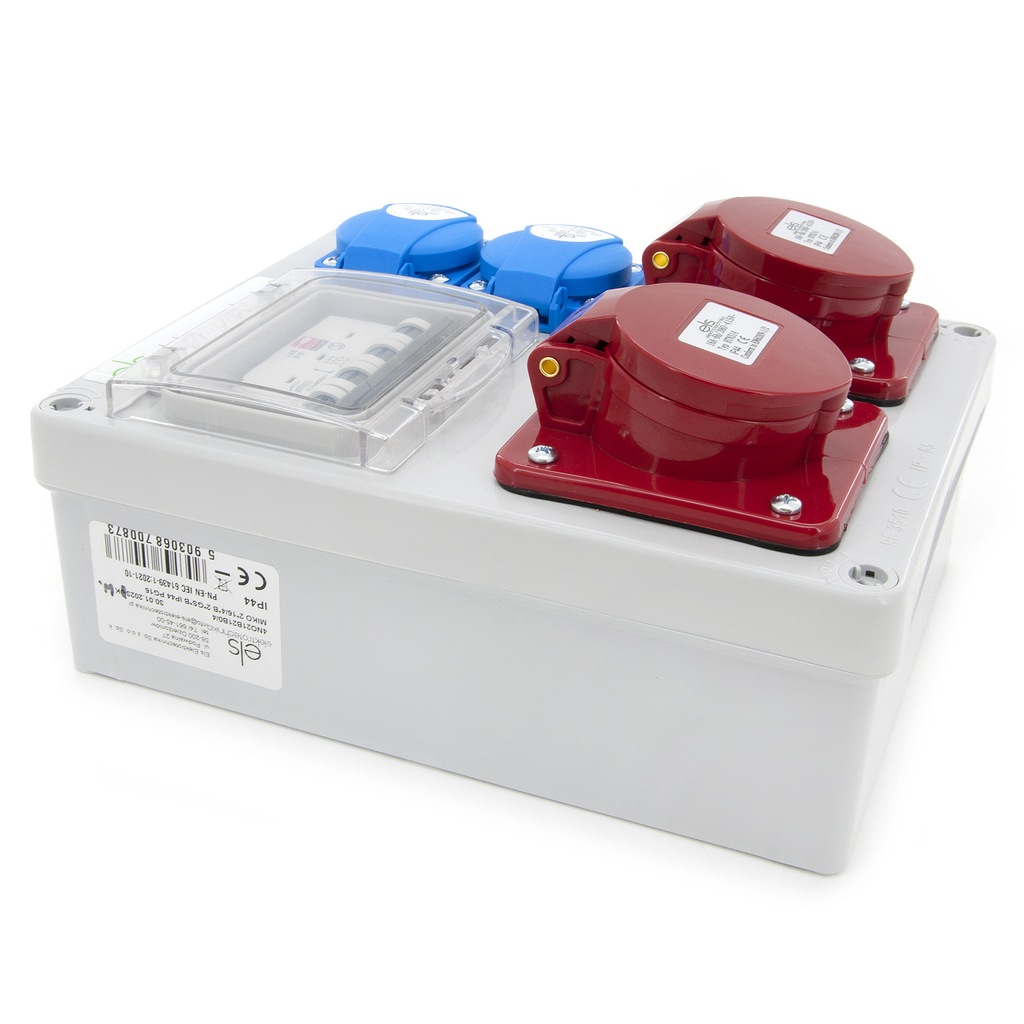 ✅ 2 x однофазне фіксоване гніздо з висновком 16A 230V IP54,повністю підключене за допомогою кабелю LGY 2, 5 мм2 і захищене B16 1P,