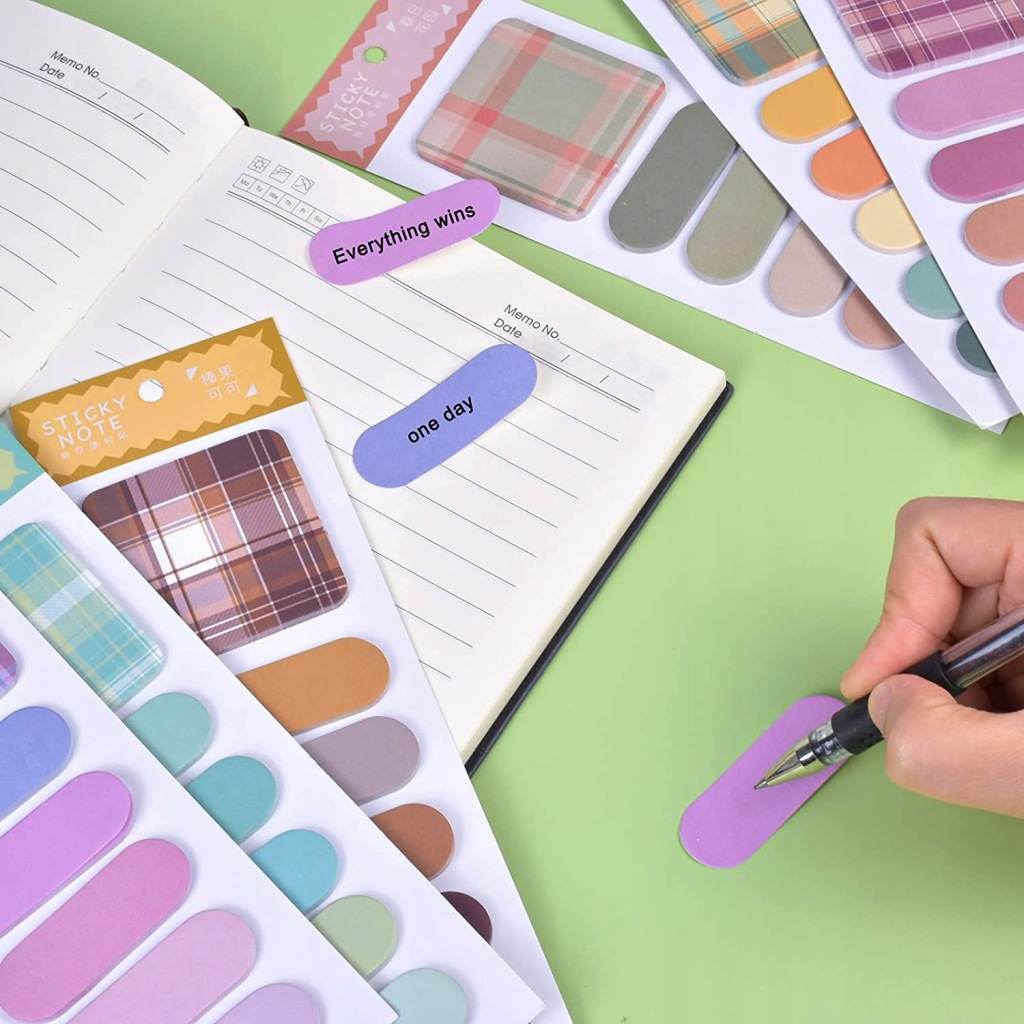 - Ви отримаєте 6 блоків з липкими нотами в пастельних тонах, таких як жовтий, зелений, фіолетовий і коричневий. Чи>