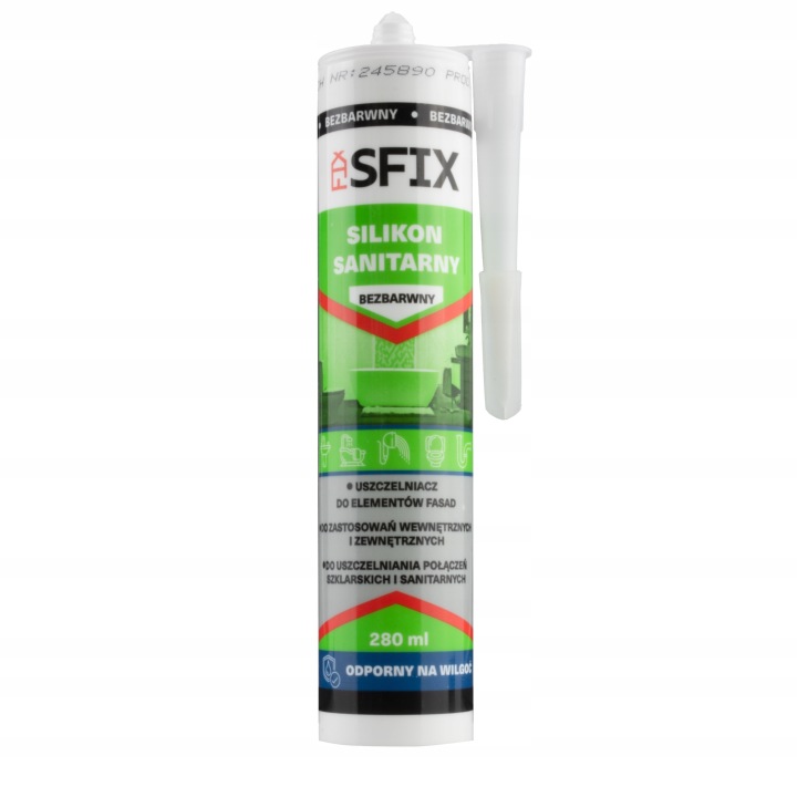 хороший сорт санітарного силікону, який показує ефективність на різних типах поверхонь. Його властивості дозволяють використовувати його в приміщеннях з підвищеною вологістю. Він необхідний, якщо вам потрібно дістатися до важкодоступних місць, таких як стики, розташовані між окремими сантехнікою (ванна, душовий піддон, умивальник, туалет) і стіною. З його допомогою можна ефективно герметизувати стики між керамічною плиткою. Препарат є відмінним вибором для місць, схильних до прямого впливу води. Його можна без проблем використовувати поруч з раковиною, душовою кабіною, ванною або раковиною. Він відмінно працює не тільки у ванній кімнаті, але і на кухні, допомагаючи подбати про ефективну герметизації сантехніки. Препарат дуже простий у використанні і забезпечує швидкий ефект затвердіння. Він демонструє сумісність з такими матеріалами, як кераміка, скло, алюміній та різні типи металевих поверхонь. Це також добре підходить для великих каналізаційних систем.