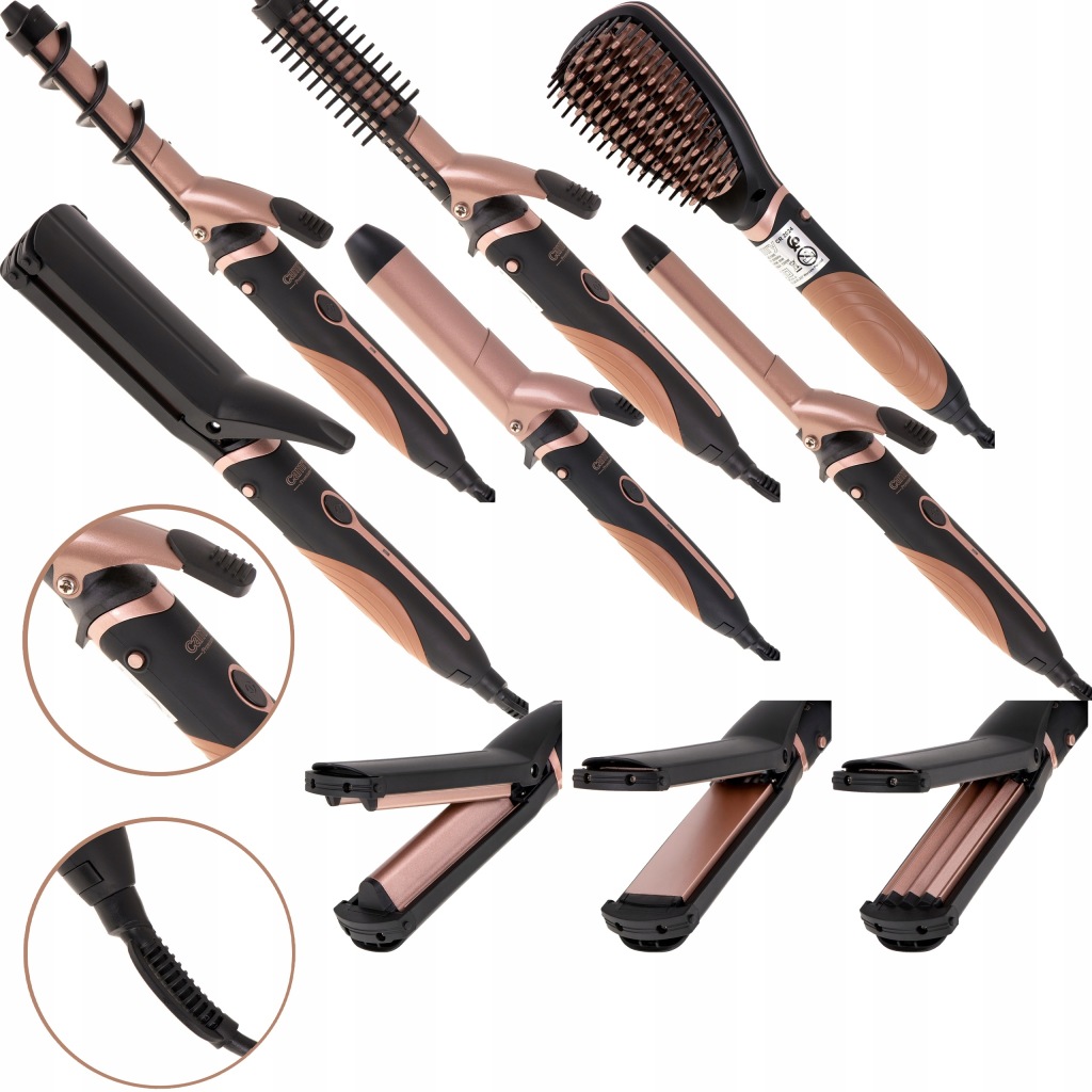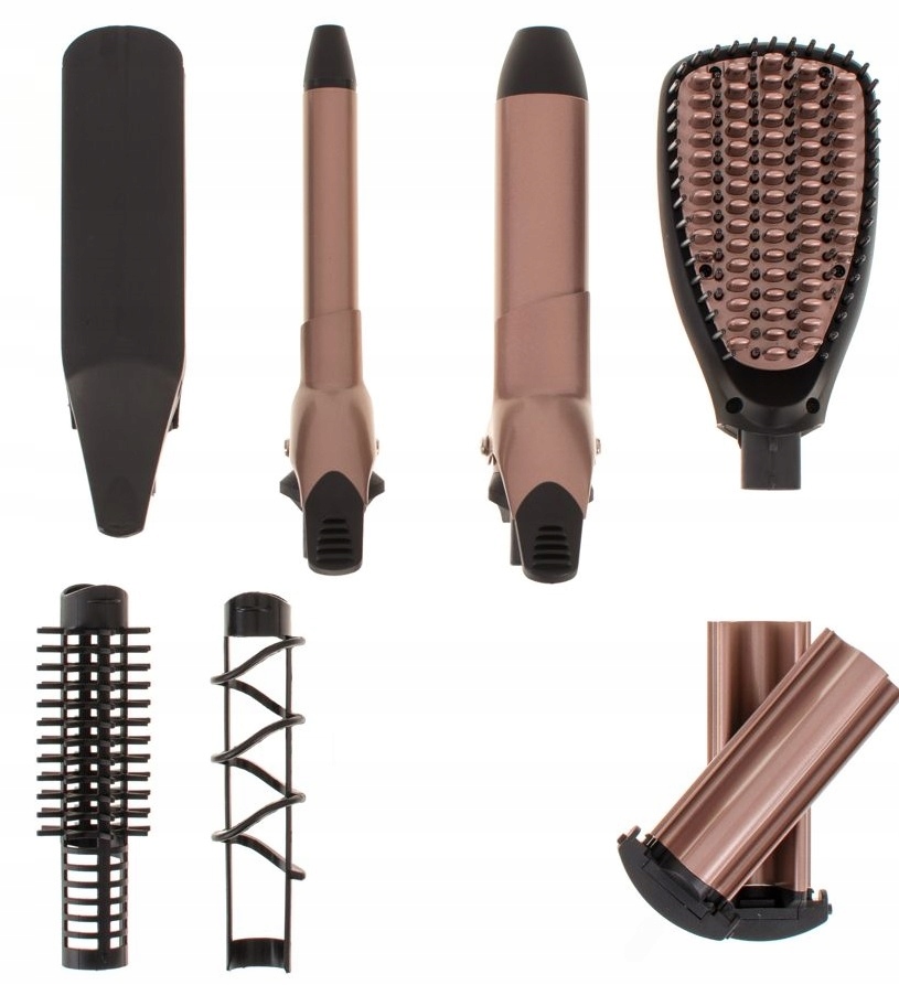 якби ми хотіли купити кожен пристрій окремо, нам потрібен був би додатковий шафа для їх зберігання! А при виборі нашого продукту ви отримуєте ручку з нагрівачем, на який наносяться вибрані наконечники. Таким чином, для зберігання такого комплекту не потрібно занадто багато місця. Насадки дуже легко замінити, і завдяки не нагрівається наконечників ми можемо безпечно їх використовувати. У комплект входять змінні насадки: хвилясті пластини 3D, гофровані пластини "ZIG-ZAG", насадки для завитків діаметром 19 і 32 мм і випрямляє щітка. З їх допомогою на волоссі можна створити більш дрібні або великі локони, тонкі хвилі або Геометричні вигини. А любителям простих рішень сподобається можливість швидко випрямити і розгладити волосся.