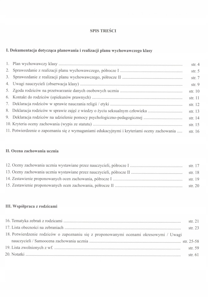 і. документація з планування та реалізації навчального плану класу