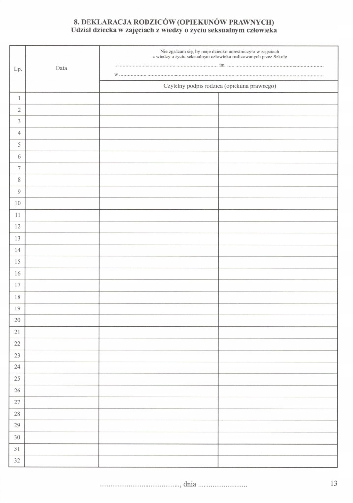 8. Декларація батьків про заняття пізнанням сексуального життя людини
