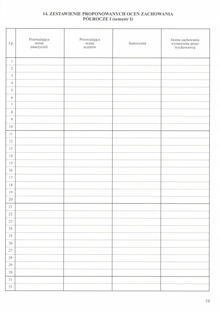 14. Зведення пропонованих оцінок поведінки, півріччя і