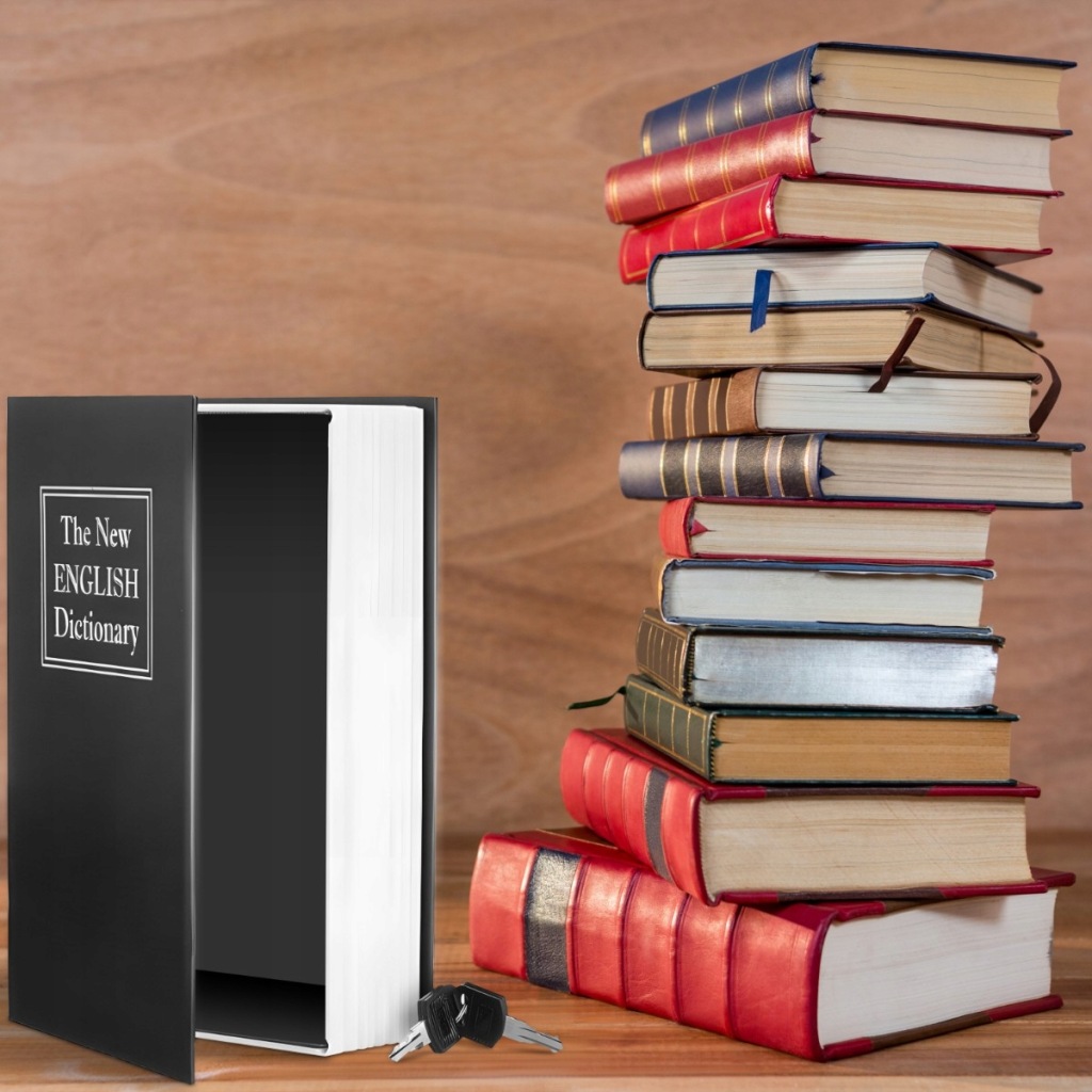 сейф в імітації словника для англійської мови відмінно підійде у вашому домі в якості місця для зберігання ваших заощаджень, ліків або документів. книга завдяки своєму дивовижному дизайну не викличе підозр у нерозуміючих гостей, а ваші заощадження/документи завжди будуть у безпеці. коробка всередині книги закривається на ключ, який буде мати тільки ви! Зберігання заощаджень ніколи не було таким простим. це дуже розумний спосіб замінити важкий і часто дорогий сейф, який ви бачите здалеку. Замініть його універсальною чудовою "книгою".