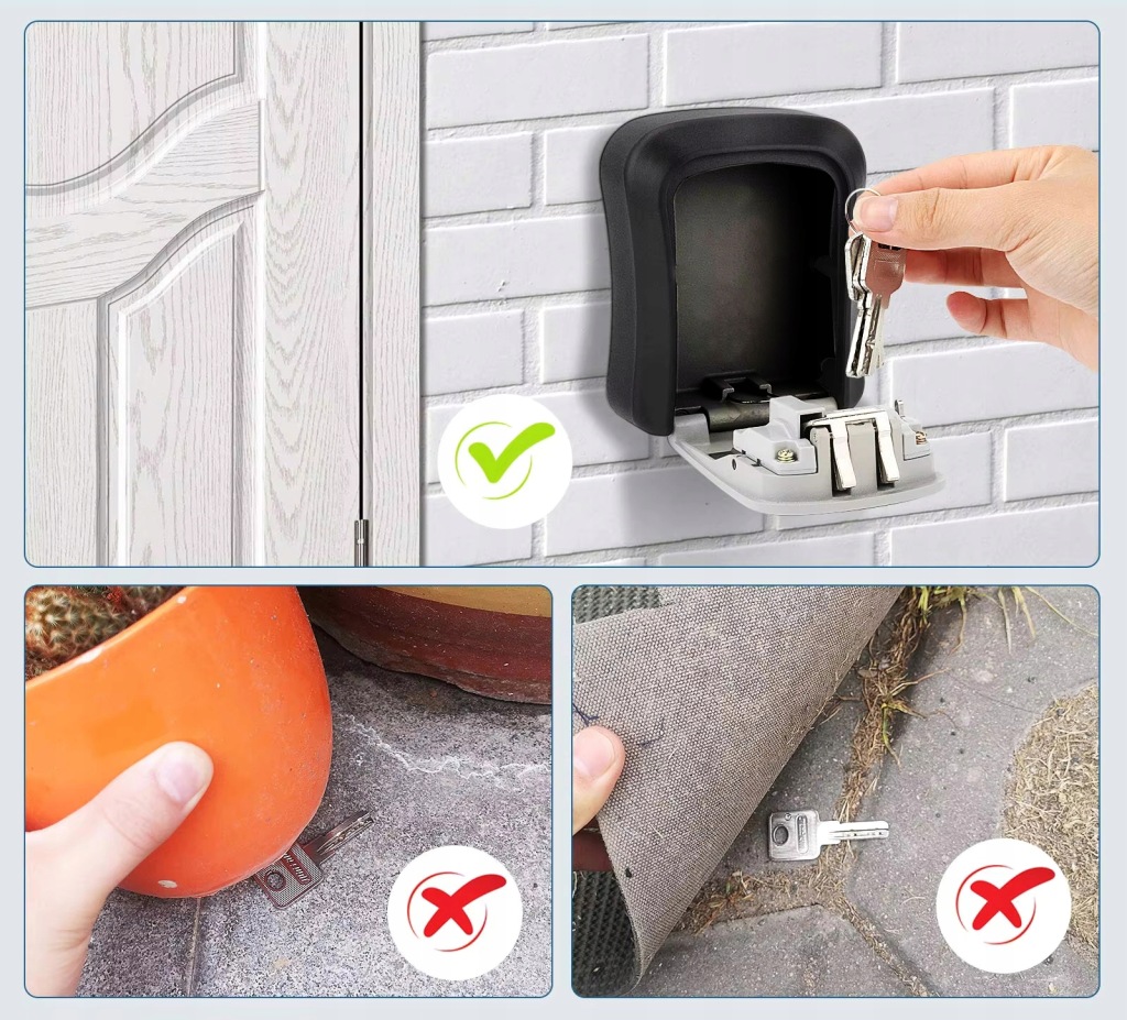 використання 4-значного замку дозволяє встановити 10 000 різних комбінацій кодів , які можна змінювати будь-яку кількість разів, сейф для ключів має потужний замок. Перевага шифру з 4 цифрами полягає в простоті його запамʼятовування. Завдяки касеті предмети, що зберігаються в ній, будуть у безпеці. Коробка виготовлена з міцного пластику. ідеально підійде як всередині, так і зовні приміщень. Його конструкція гарантує, що речі, що зберігаються в ньому, будуть захищені від погодних умов, таких як дощ, вітер або сніг.