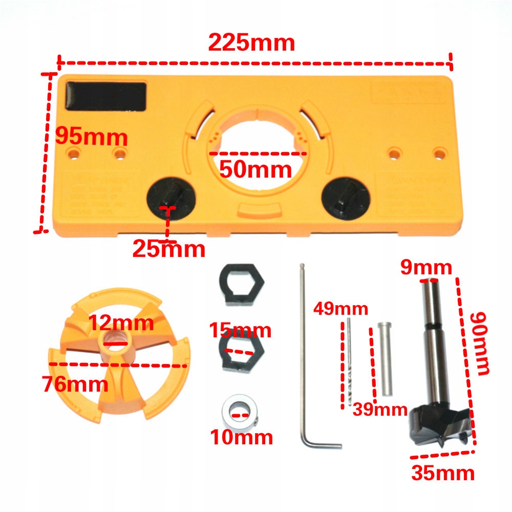 - можливість свердління в двох вимірах від бічної площини до центру отвору шарніра 75 мм і 100