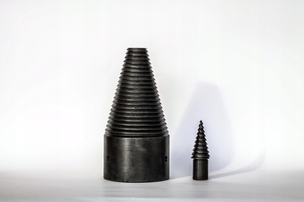 шнеки виготовлені на верстатах з ЧПУ зі сталі марки C45, після чого загартовані до твердості 40hrc, що робить їх твердими і робить їх не крихкими. Шнеки загартовані в печі цілком, а не тільки на самому наконечнику. Деревина співпрацює при розколюванні по всій поверхні шнека. Якби сам наконечник був загартований, корпус шнека зазнав би швидкого стирання, тому що він був би занадто мʼяким. тому наші шнеки і nbsp; загартовані на всій поверхні і nbsp; І nbsp;тільки шнеки, виконані за такою технологією, забезпечують тривалу і безаварійну роботу.