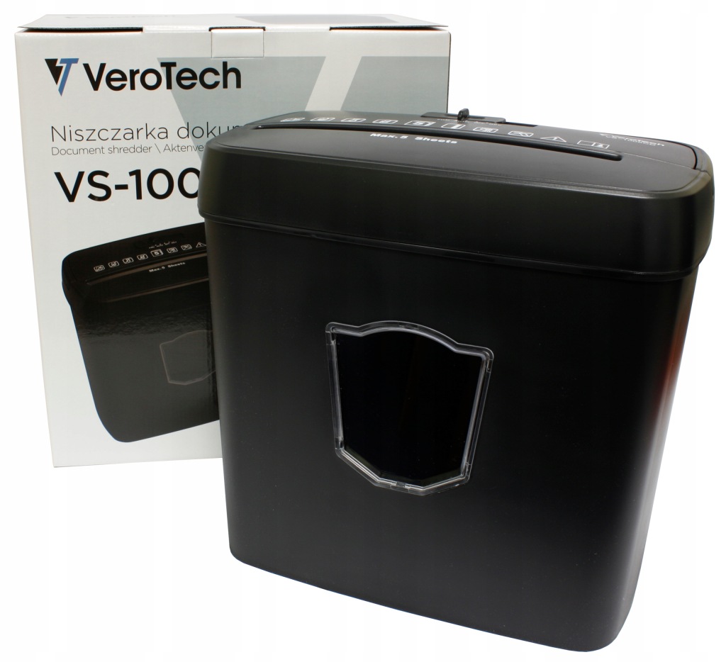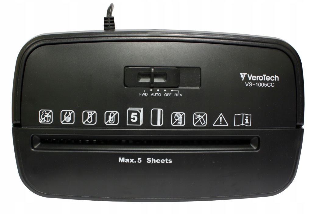 подрібнювач Verotech VS-1005cc використовується для знищення документів і ідеально підходить для офісу і домашнього використання. Він здатний знищувати до 5 аркушів паперу формату А4 за один раз. Він має функцію автоматичного запуску / зупинки та функцію скасування застрягання.