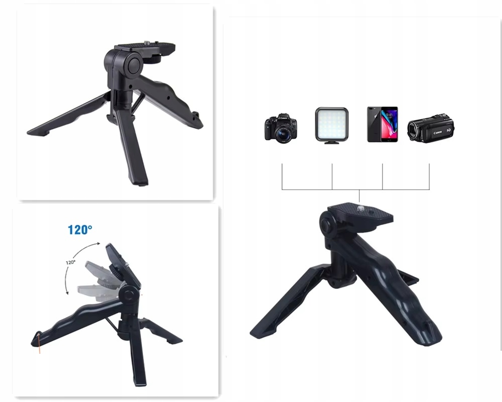 штатив ay-49 Video Making Kit vlogging призначений для розміщення декількох пристроїв. Він включає в себе універсальну монтажну пластину, яка сумісна з більшістю камер DSLR, відеокамер, мобільних телефонів, камер GoPro і навіть невеликих, простих у використанні камер. Ця гнучкість є ключовою перевагою, що дозволяє перемикатися між різними пристроями без необхідності додаткових аксесуарів або адаптерів.
