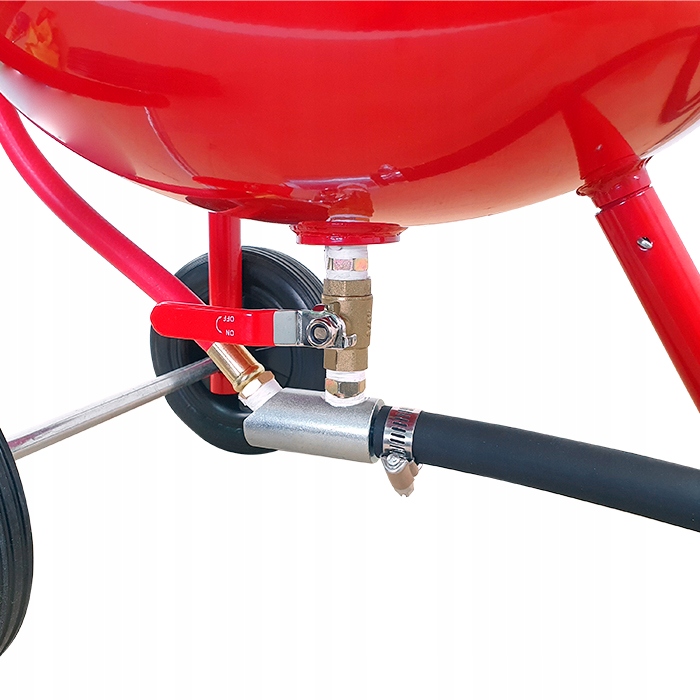 піскоструминна машина оснащена направляючою ручкою і двома колесами , які полегшують транспортування і маневрування. Пристрій також маєнижній колонтитул .