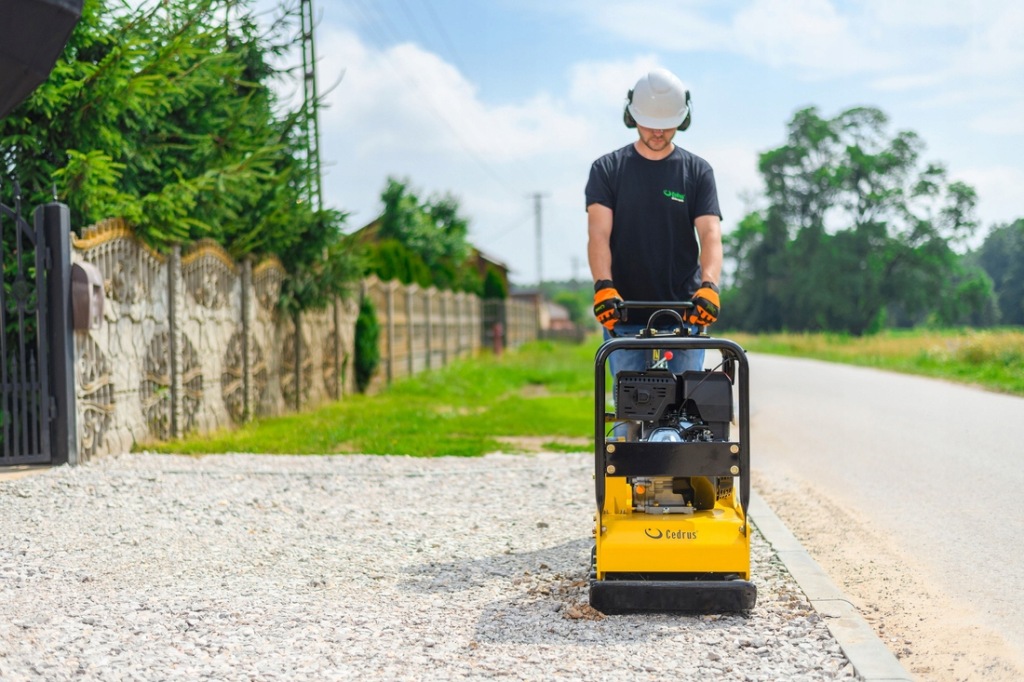 ущільнювач CEDRUS ZG05 260 кг ідеально підходить для дорожніх робіт, укладання бруківки, трамбування доріг, доріжок або ландшафтних робіт. Оснащений двигуном потужністю 13 К.С. і обʼємом 389 куб. см, він може впоратися з будь-яким завданням.