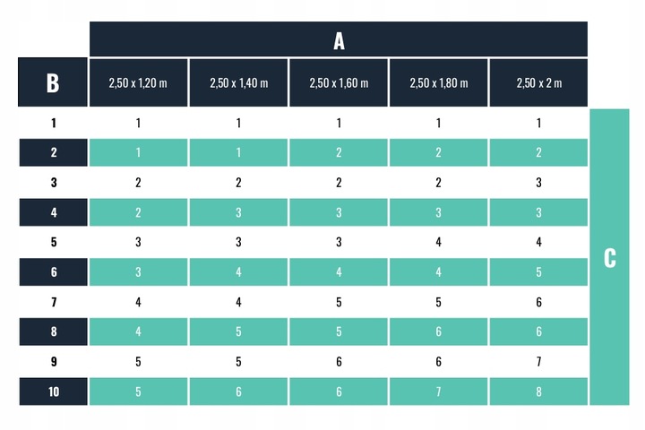 3. Подивіться в таблиці, скільки рулонів стрічки для забору вагою 450 г / м2 Ви повинні замовити.