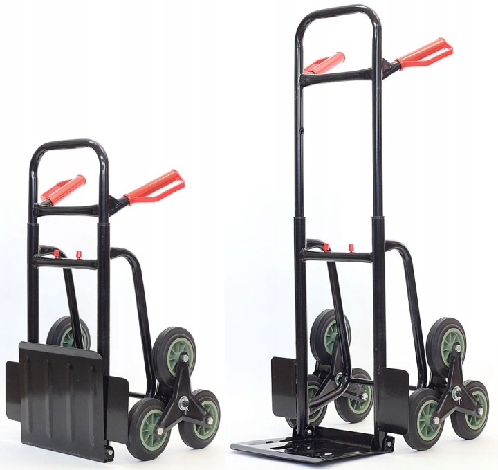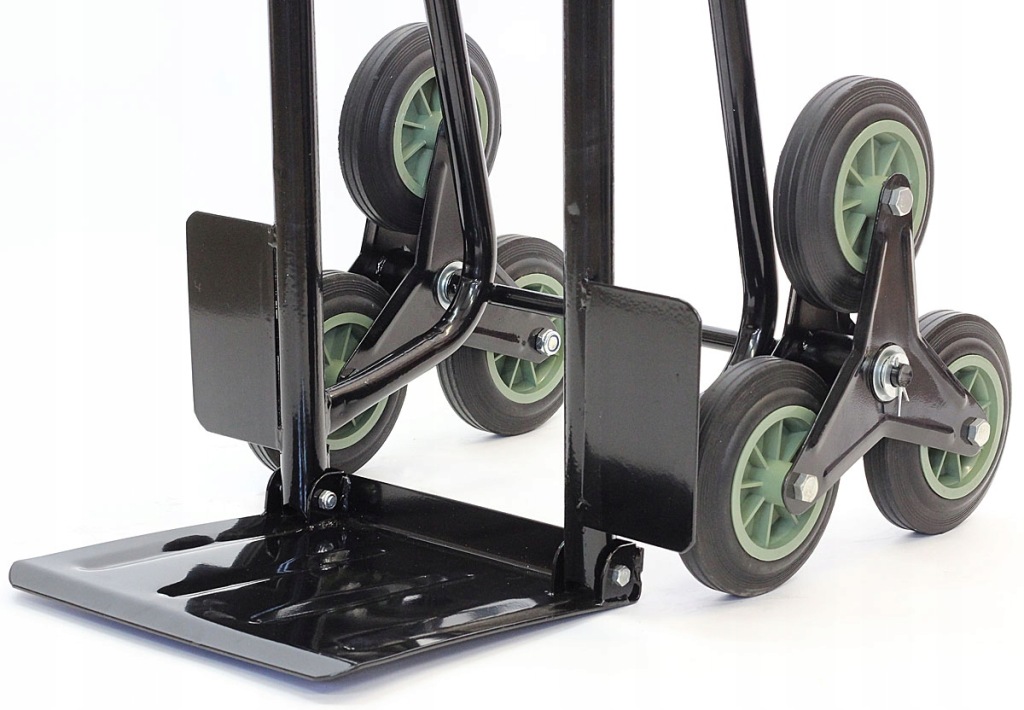 міцна і стійка 6-колісна конструкція дозволяє зручно перевозити вантажі, включаючи підйом і підйом по сходах і проїзд через пороги. Ролики виготовлені з міцного пластику. Вони конструкція забезпечує зчеплення на будь-якій поверхні.
