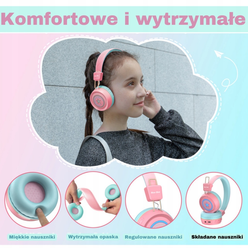 бездротові навушники New BEE для дітей забезпечують свободу пересування і усувають плутанину кабелів, що робить їх безпечними і зручними у використанні. крім того, навушники мають складні амбушюри, завдяки такій гнучкій конструкції ви можете легко заховати навушники в рюкзак, ящик, сумку або велику кишеню.