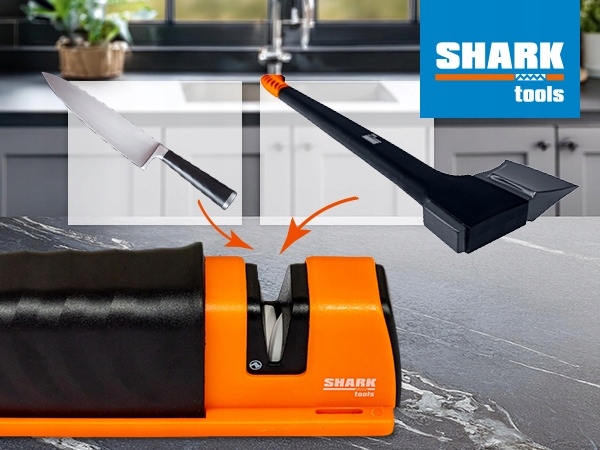 точилка Shark підходить для заточування різних типів ножів, в тому числі кухонних, зовнішніх ножів, тесаків і сокир. Завдяки цьому один пристрій відповідає потребам заточування різних інструментів, що робить його практичним і універсальним рішенням в будь-якій кухні і майстерні