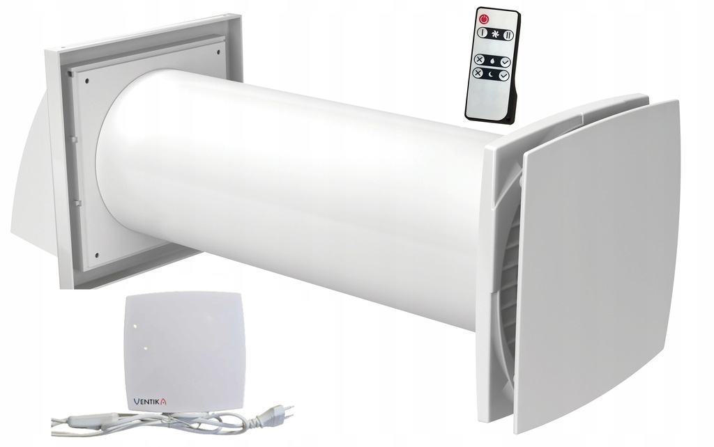 - декоративна передня панель вентилятора, оснащеного кабелем з вилкою і вимикачем (дл. 170 см) і регульований датчик вологості (під передньою декоративною панеллю)