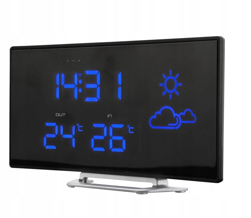 пристрій розміром 19,5 x 3,5 x 10,6 см (Ш x г) x ВИС.) Має мінімалістський дизайн.його повна передня частина-8,3-дюймовий РК-дисплей із синіми цифрами на чорному тлі.Срібна рамка доповнює сучасний дизайн.