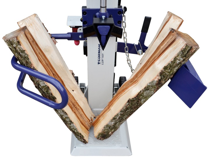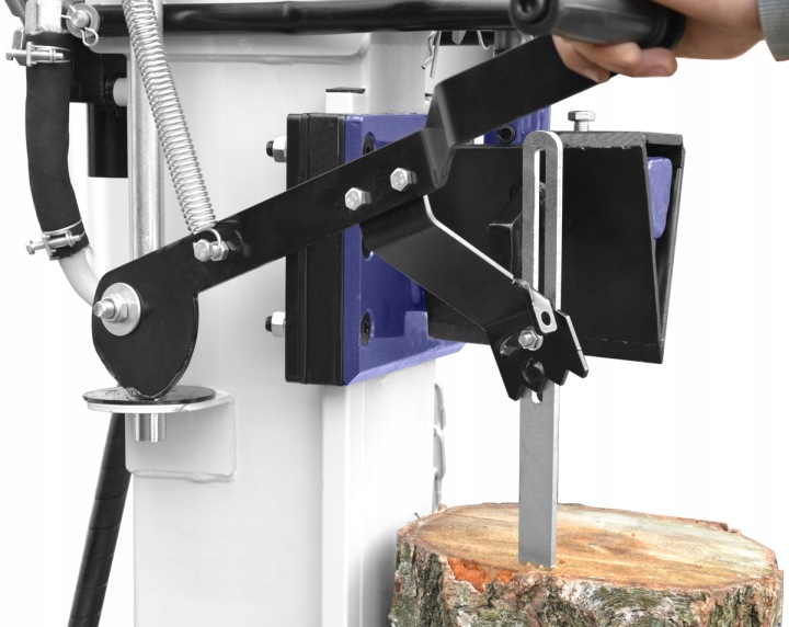 складаний бічний кожух також служить системою підйому важких колод і установки в вертикаль безпосередньо під клин (для підйому необхідно розібрати правий кожух).