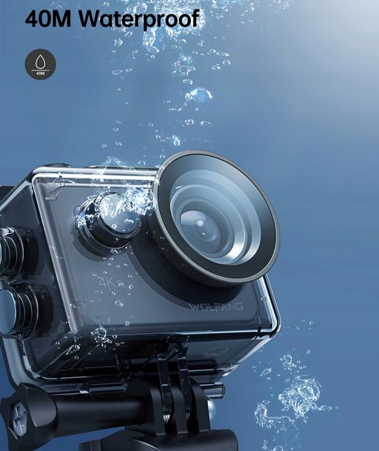 - водонепроникна камера і режим занурення 40 м: Водонепроникний корпус захищає цю підводну камеру для використання під водою до 40 метрів. Ідеально підходить для водних видів спорту, таких як плавання, серфінг, Вітрильний спорт, дайвінг і т.д. режим занурення з корекцією кольору значно зменшує довжину хвилі синього або зеленого кольору, що робить відео більш яскравим і природним.