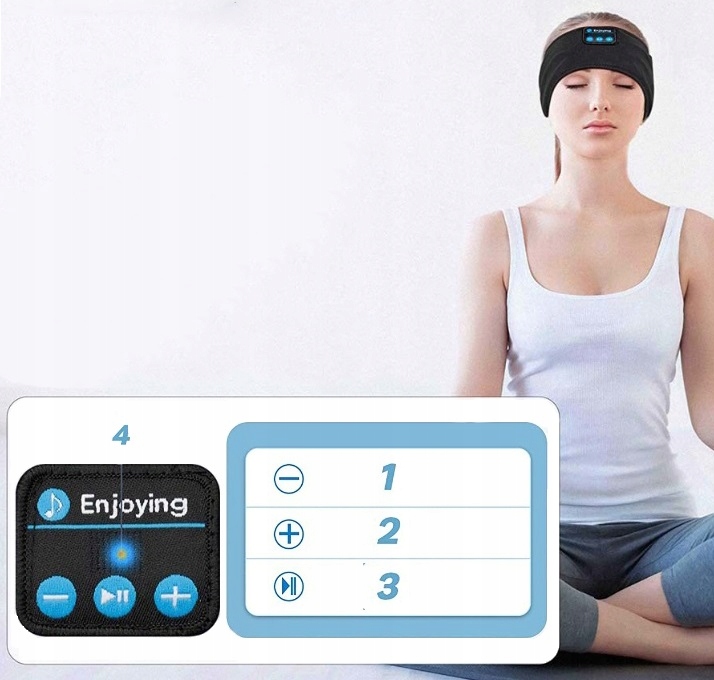 повʼязка на голову дозволяє слухати музику без необхідності надягати Додаткові навушники, а також захищає від турбують під час активності волосся і поту. Весь комплект ідеальний do podróży, snu, treningu, biegania, jogi, audiobooków. Наголовʼя буде працювати під час сну , блокуючи шум з навколишнього середовища без необхідності використання додаткових навушників.