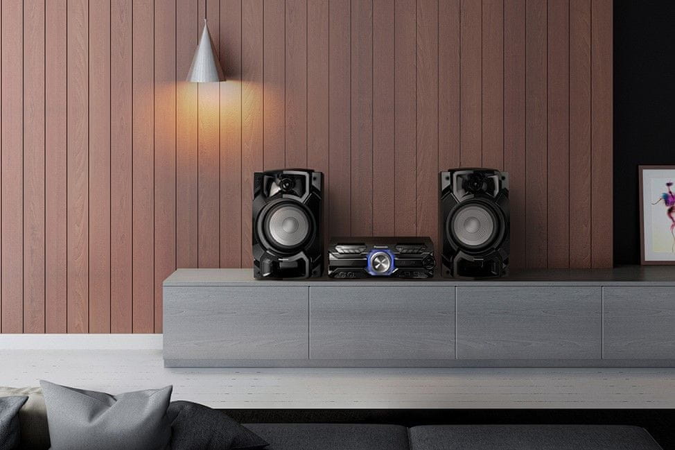 низькочастотний динамік діаметром 20 см і 2-канальний цифровий підсилювач забезпечують чистий і динамічний звук. Краще зʼєднання зі смартфоном дозволяє легко ділитися улюбленими піснями. Основний блок має новий вигляд-він нижче, тому краще вписується в будь-який інтерʼєр. Система AKX520 також оснащена двома розʼємами для мікрофона і функцією повного караоке, що дозволяє співати дуетом з сімʼєю і друзями.