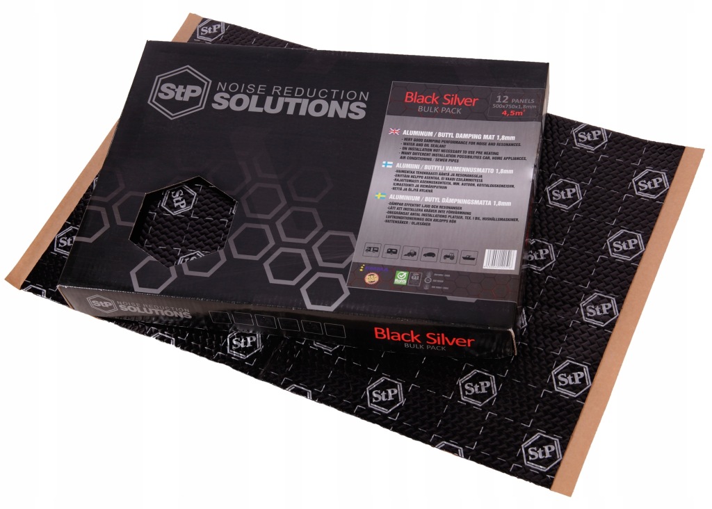 гнучкий звукоізоляційний килимок STP Black Silver виготовлений з чистого бутилу без наповнювачів.