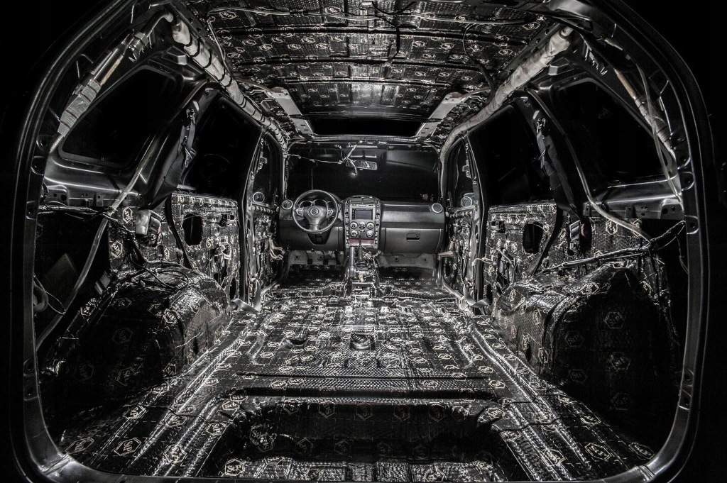 самоклеючий бутиловий килимокзменшує тремтіння, бурчання і дзижчання і створює шумовий барʼєр . Завдяки дуже високій пластичності і зовнішньої чорної алюмінієвої фольги герметизує і термічно ізолює.