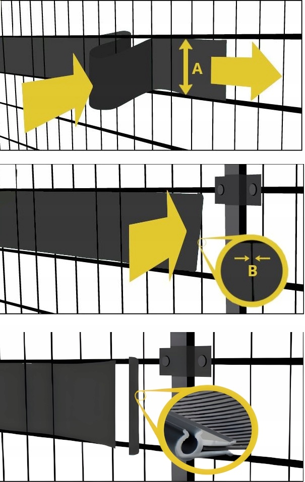 a - стрічка преміум-класу 19 см призначена для установки на панельні огорожі з висотою сітки від 19 см до 20 см.
