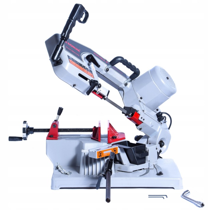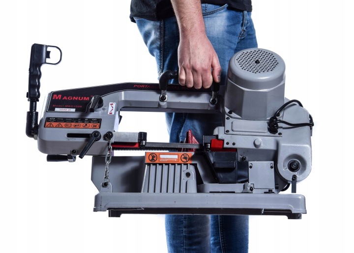 професійна стрічкова пила фірми MAGNUM для різання металу з поворотним важелем і ручною швидкістю спуску.