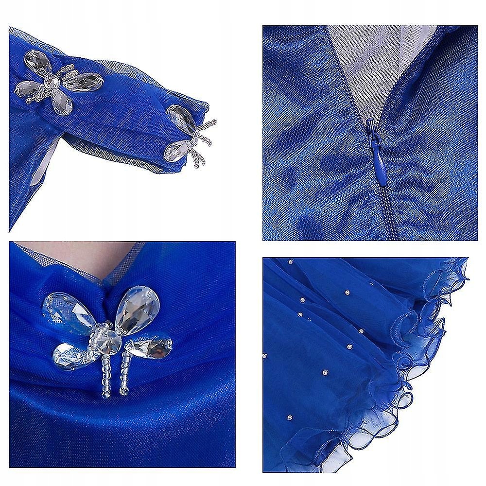 сукня, зшита з блискучих і блискучих матеріалів.тюлевий відтінок сукні на спідниці чудово виглядає в Божевільному танці.сукня без рукавів прикрашена різнокольоровими метеликами, окремо закріпленими на сукні.