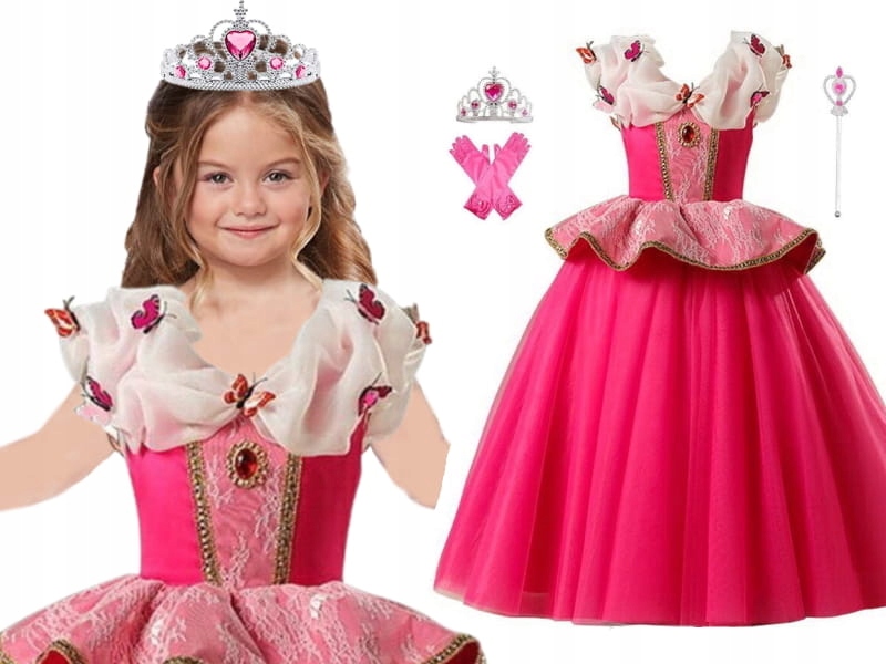 сукня, яка є основою цього вбрання, була розроблена з увагою до деталей, щоб передати характер Принцеси Аврори. Виготовлений з мʼяких матеріалів в темно-рожевих і білих тонах, він забезпечує зручність носіння і свободу рухів під час ігор і вечірок. Елегантний крій, ніжні прикраси і тонкі акценти підкреслюють красу і унікальність сукні.