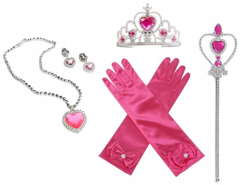 цей набір включає в себе не тільки чудове плаття, але і набір аксесуарів. У ньому ви знайдете скіпетр, корону і рожеві рукавички.