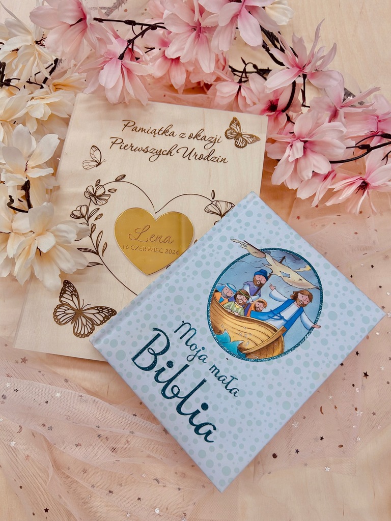 персоналізована деревʼяна коробка для Біблії-сувенір на перший день народження
