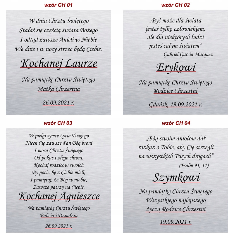 1️ ⃣ спочатку виберіть правильне зображення і подумайте, який текст гравюри ви хочете замовити. Нижче наведено кілька моделей.