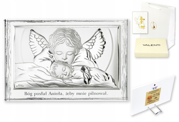СУВЕНІР СВЯТОГО ХРЕЩЕННЯ ДЛЯ ДІВЧИНКИ ХЛОПЧИКА СРІБНА КАРТИНА АНГЕЛ-ХРАНИТЕЛЬ