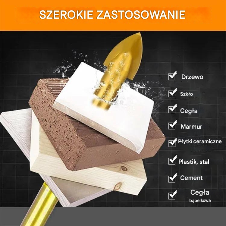 робоча пластина з карбіду вольфраму. Свердло має циліндричну фіксуючу ручку. Призначений для свердління в склі та керамічних виробах.