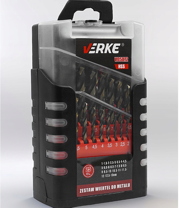 набір аксесуарів VERKE, що складається з 25 предметів ручної роботи, дозволить вам виконувати різні роботи. У комплект входять Свердла по металу.
