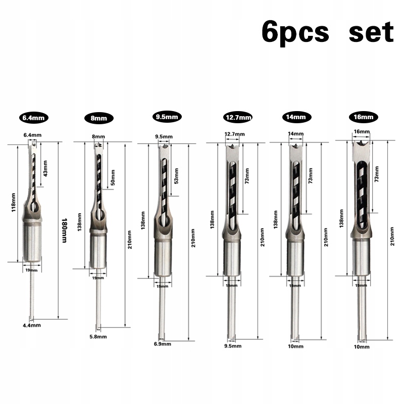 ✅ набір інструментів: включає 6 квадратних доліт, 6 свердел і транспортну упаковку.