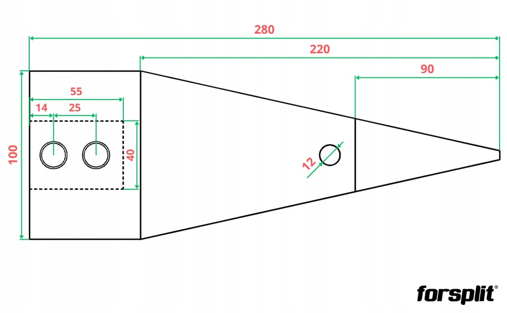 предметом продажу є шнек зі змінним (дюбельним) наконечником SWK2™ діаметром 100mm з отвором для валу 40mm - для розколювання деревʼяних блоків.