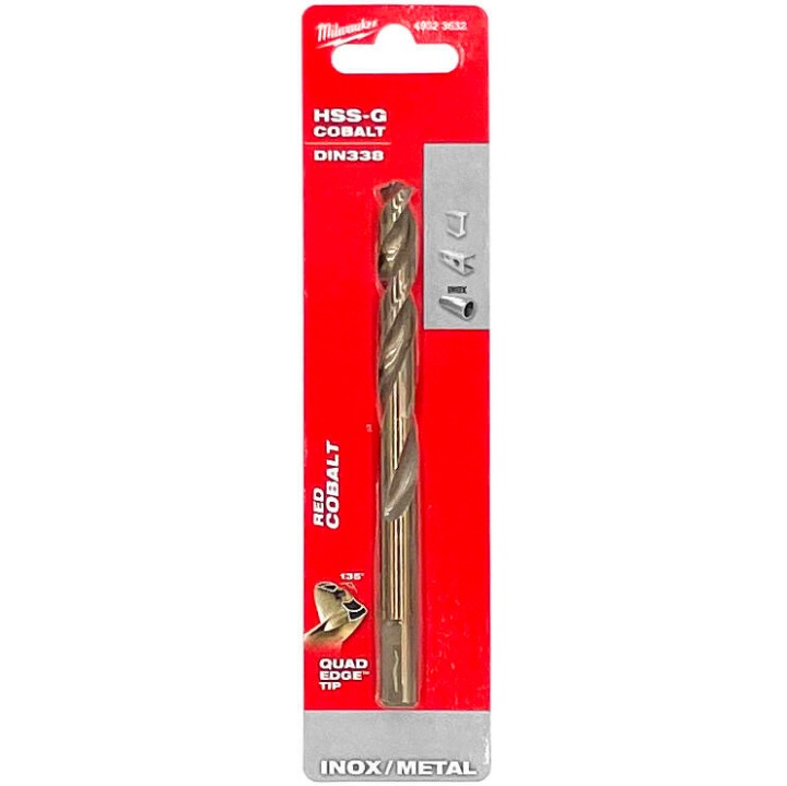 нормальний кут паза типу. Підходить для свердління в високолегованих сталях і металах з можливістю розтягування більше 1000 Н/мм2, наприклад, в кислотостійких сталях і нержавіючої сталі. Ручка, сплющена з 3 сторін, забезпечує кращий захоплення. Свердла по металу, шліфовані з твердої, надзвичайно термостійкої, швидкорізальної сталі з домішкою кобальту, виготовленої відповідно до DIN 338. Дводюймовий наконечник покращує центрування. Значення кобальту 5%. Витримує високі температури буріння.