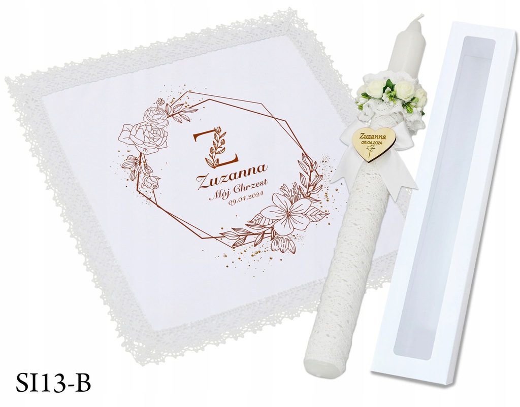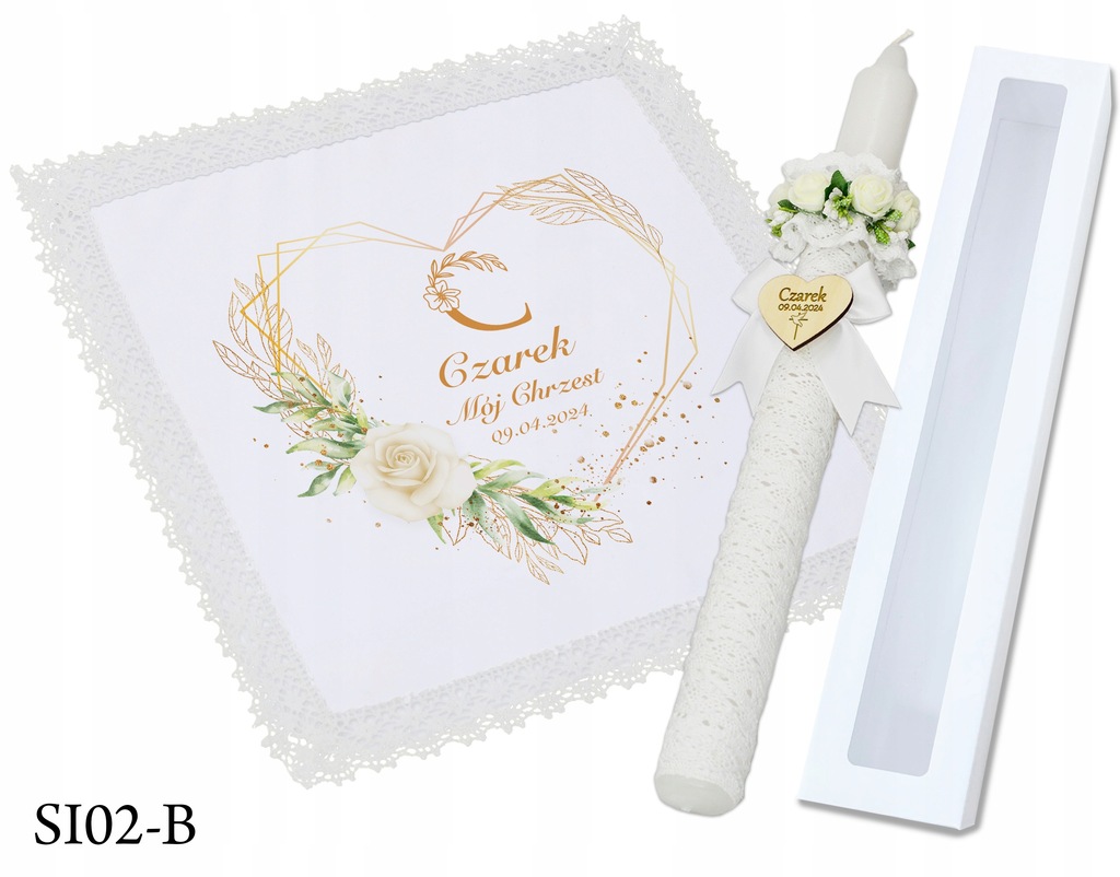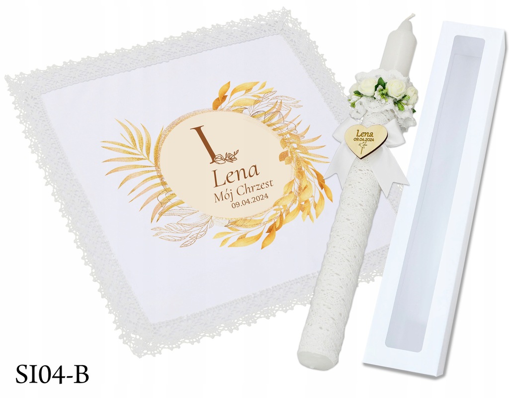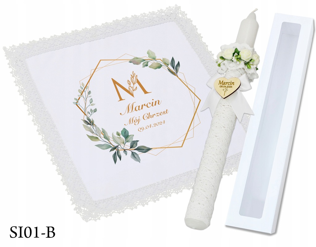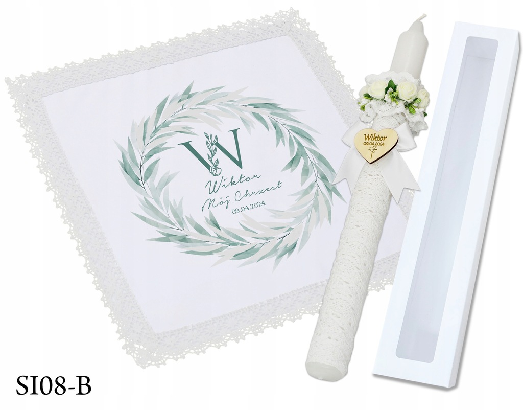 Свічка для хрещення білий халат і свічка для хрещення коробка мережива B ініціал