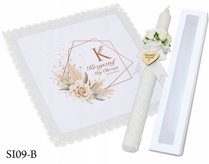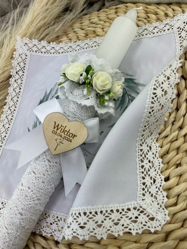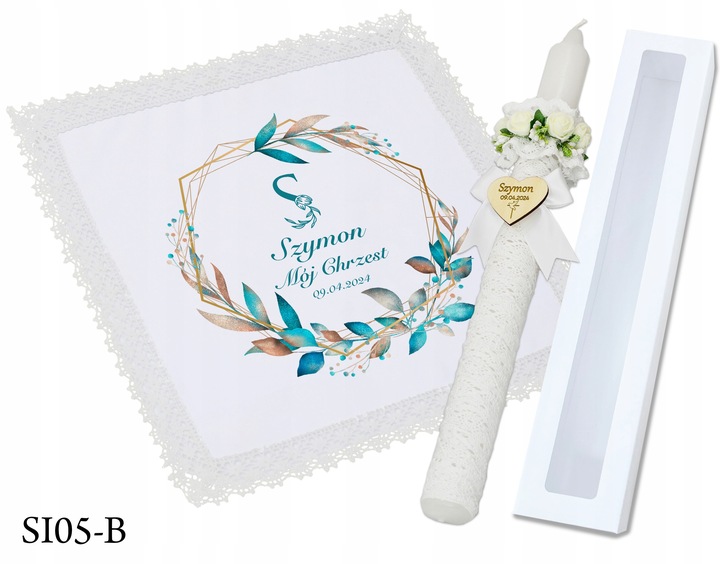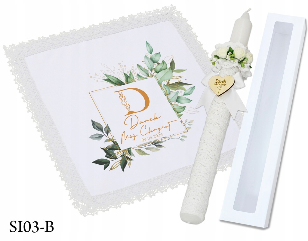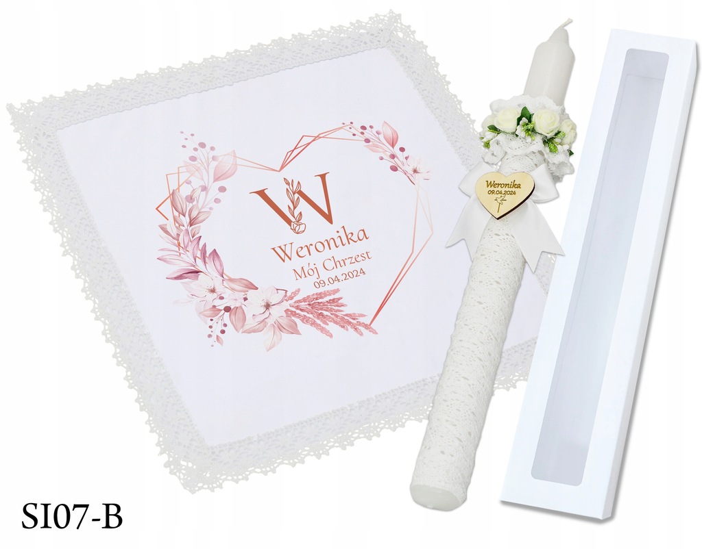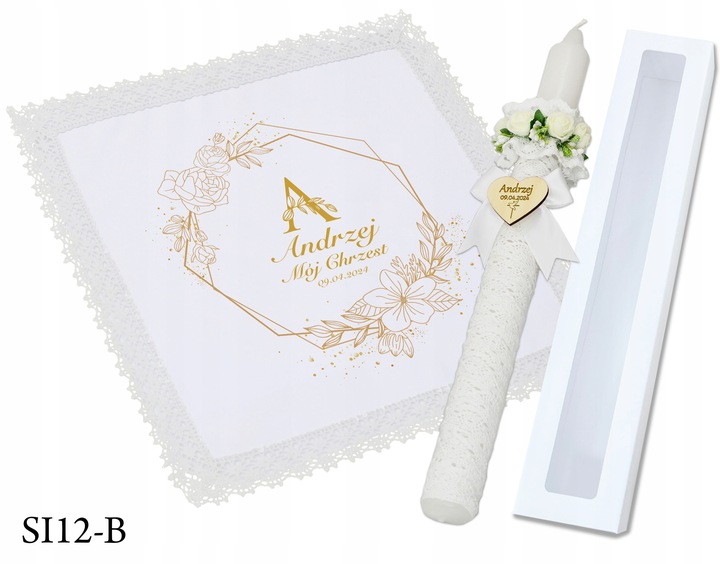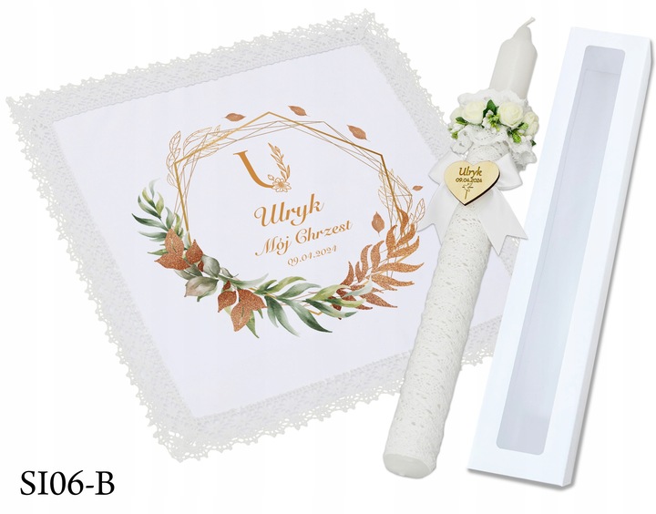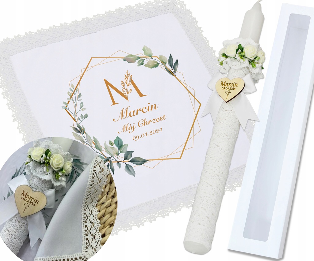 Свічка для хрещення білий халат і свічка для хрещення коробка мережива B ініціал