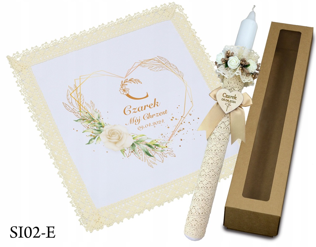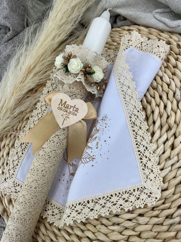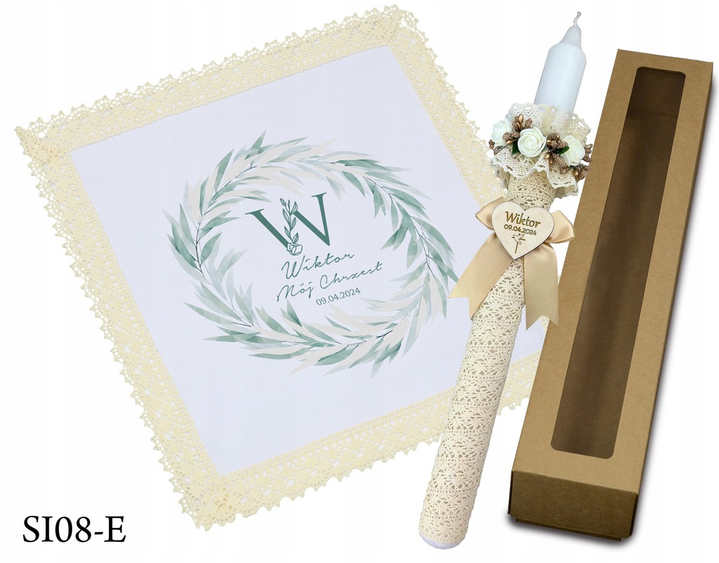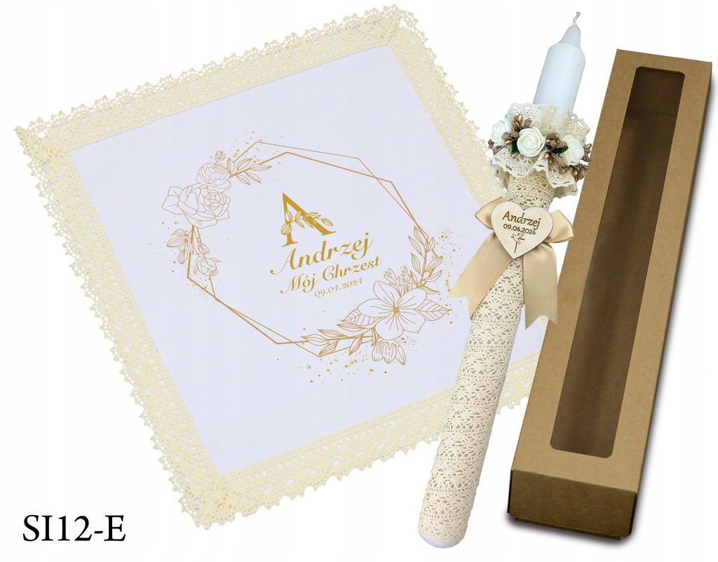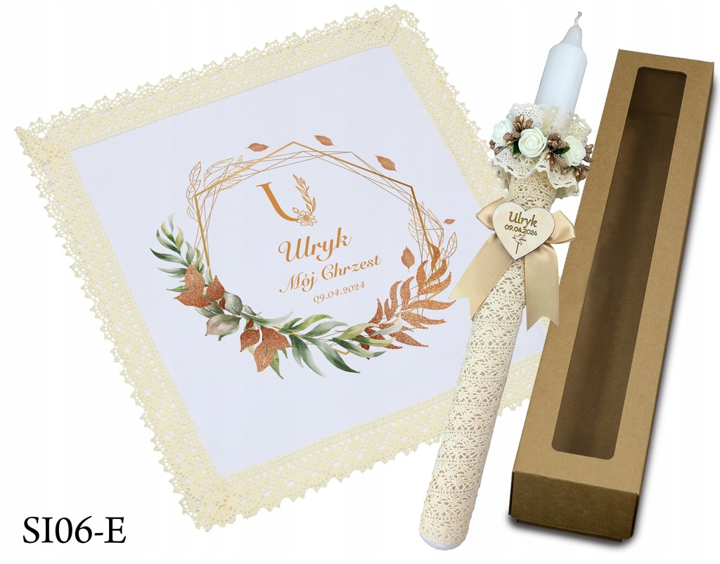 Свічка для хрещення білий халат і свічка для хрещення коробка мережива e ініціал